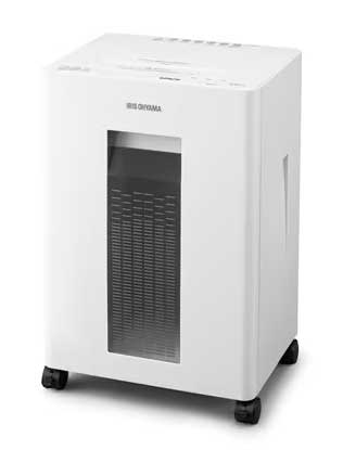 一度にA4コピー用紙を最大15枚細断でき、1分間で約100枚細断可能です。細断サイズは約2×15mm(マイクロクロスカットタイプ)。機密情報のセキュリティにおすすめです。ダストボックスはA4コピー用紙約825枚収容できる大容量なので、ごみ捨ての回数を減らせます。また、ダストボックスへごみ袋を取り付けて使用できるので、細断クズが散らからず、ごみ捨ての手間を省くことができます。ごみ袋推奨サイズは45L(650×800mm)です。オートクリーニング機能搭載で、細断中は5回に1回、自動で清掃運転(逆転5秒、正転5秒)しカッターの汚れを落とします。カッターのお手入れには、アイリスオーヤマ製シュレッダー用簡単お手入れシートSMS06(別売)を使ってお手入れすると、刃の全体に潤滑油が行き渡り動作を滑らかにします。オートリバース機能搭載で、紙を過剰投入した際に自動で紙を押し戻します。万が一紙が詰まっても、正転ボタンと逆転ボタンを同時押しすると、強制細断機能が作動し紙を力強く細断します。デスクサイドに置けて使いやすいデザインです。移動に便利なキャスター付きです。グリーン購入法適合商品です。