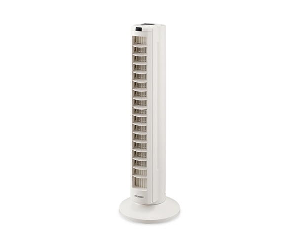 省スペースで広範囲にパワフル送風ができる、タワーファンです。手動で上下にルーバーを動かすことができ、自由に風向きを変えられます。(ルーバーは上半分・下半分で独立し、別々に方向設定が可能)左右自動首振り機能付きで、風量が8段階調整でお好みの風量設定が可能です。(風量の段階表示は見やすい7セグ表示)リズム風モード搭載で風の強さを変化させて自然に近い風を再現します。離れた場所からもラクに操作ができるリモコン付きです。就寝時に便利な切タイマー付き(最大9時間)DCモーター搭載で省エネ、静音設計です。おやすみモードで表示を減光し、暗所でのまぶしさを軽減できます。軽く触れるだけでスマートに操作ができる、静電タッチパネルの操作部です。