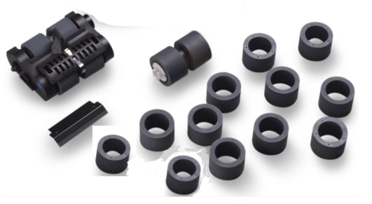 扱いがデリケートな特に薄い紙をスキャンする際に使用します。このキットにはフィードモジュール1個、セパレータローラ1個、セパレーションパッド4個、フィードモジュール用交換タイヤ17個、セパレータローラ用交換タイヤ9個が含まれます。
