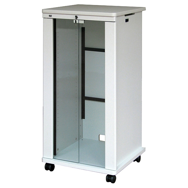 AVキャビネット/EIA23U/60φキャスター/ホワイト/ガラス扉