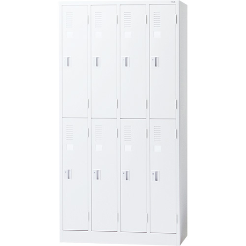 利用人数にあわせて、1人用から8人用までの幅広いラインアップ。どんな場所にもなじみやすいホワイトカラーをご用意しました。「更衣ロッカー LK2シリーズ」 8人用/シリンダー錠。●外形寸法(幅)[mm]:900●外形寸法(奥)[mm]:515●外形寸法(高)[mm]:1790●質量[kg]:58.2●内形寸法[mm]:W左183、中183、右174・D465・H812mm●色:ホワイト●種類:8人用●錠種類:シリンダー錠 ※不特定多数の方がご利用される場所には、シリンダー錠タイプをおすすめします。 ※傘立、雫受は付きません。 ※各扉に鍵2本付。●材質:本体=ホワイト、鋼板、樹脂焼付塗装、取っ手=ABS樹脂