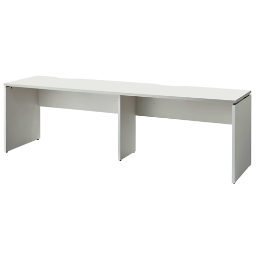 多様なワークスタイルを実現するデスクシリーズ「b-Foret(ビーフォレット)」フリーデスク片面タイプ高さ720mm/W2400mm/天板ホワイト。片面タイプなので壁につけてのレイアウトにおすすめ。天板には配線を簡単に出し入れできる溝(配線口)付きで、コンセントやコードをすっきり収納します。※天板サイズ2400mmの大型商品です。購入の際は、搬入経路を十分にご確認ください。●天板下有効寸法(H):695mm●下肢空間(W):2348mm●カラー:本体・天板=ホワイト●天板厚:25mm●材質:天板・幕板・本体・脚部=低圧メラミン樹脂化粧板、芯材=パーティクルボード、エッジ=ABS●最大積載質量:天板(幅1200mmあたり)=60kg●アジャスター付