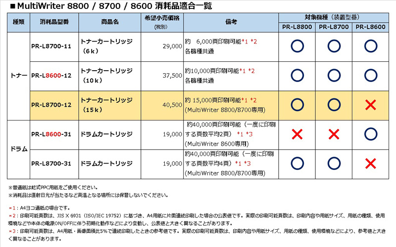 | 商品型番 | PR-L8700-12 |