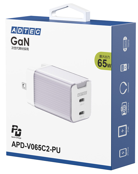 | 商品名 | PD対応 AC充電器/GaN/65W/USB Type-C 2ポート/パープル |