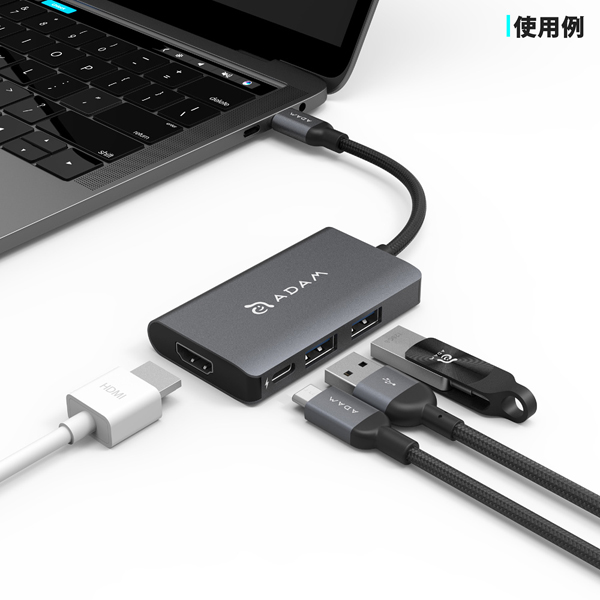 USB Type-Cハブ 2ポートType-A/PD/HDMI変換アダプター スペースグレー このUSBハブ1つでデータ転送/HDMI映像音声出力/PD充電が可能