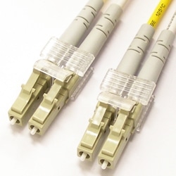2心のマルチモード(62.5/125μm)光ファイバーケーブル。DLC(Duplex LC)コネクタのクリップは着脱可能。