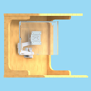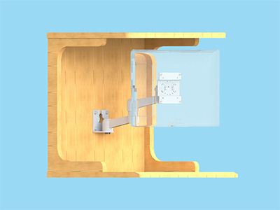 折り畳んで収納が可能な平行移動機能を持った3軸構造(最大357.2mm延長)壁・パネル取付ブラケット一体型アームです。(耐荷重2Kg ライトグレー)