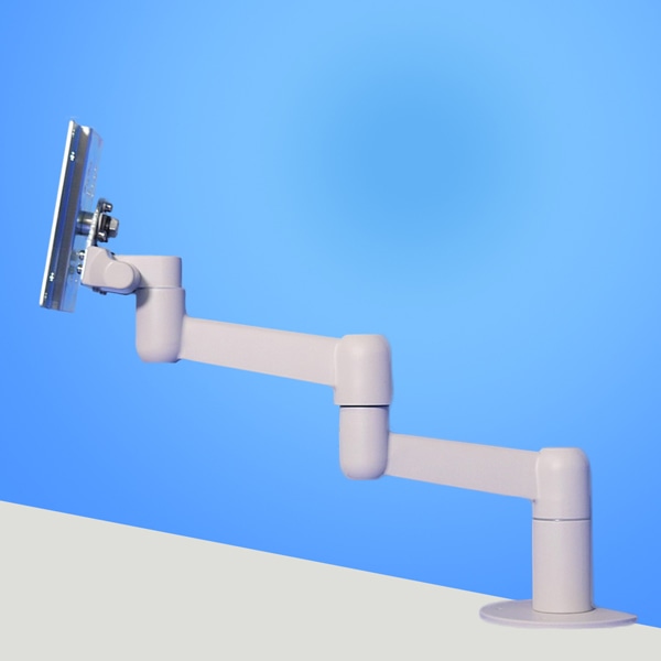 画面回転機能と折り畳んで収納が可能な平行移動3軸構造(最大317.2mm延長:耐荷重2Kg対応)のアーム本体ユニット(ライトグレー色)です。