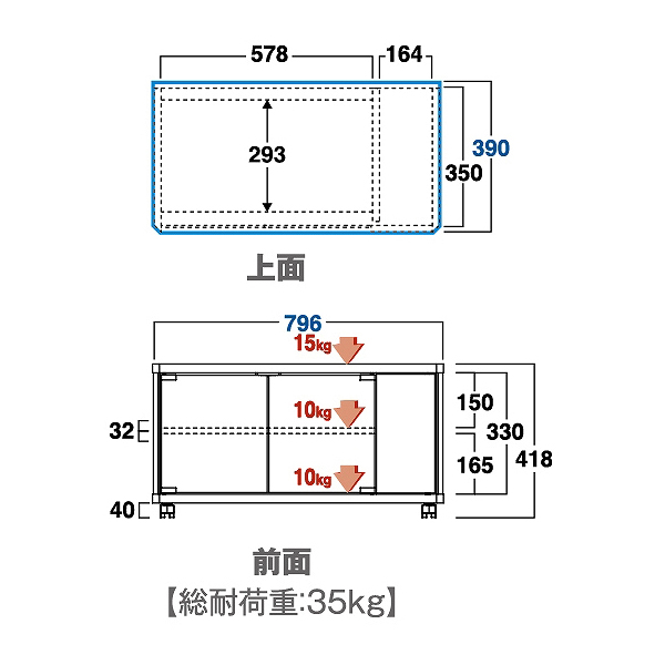 ■TV対応インチ:~32V型■本体重量:15.5kg■耐荷重:15kg *寸法図内に詳細掲載■寸法:W796mm D390mm H418mm■仕様・強化ガラス+飛散防止フィルム貼りのダブルセイフティー ・ガラス扉+木扉収納スペース ・2色付け替えキャスター(シルバー/クロ■付属品・テレビ転倒防止部品・キャスタートレイ