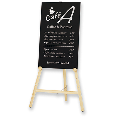 ボード掲示におすすめの木製三脚イーゼルです。A4からB1までのボードに対応しております(適合ボードサイズ(㎜):W210~800×H250~1200×D30㎜以内)。高さは9段階で調節が可能、ゴム足がついており、折りたたんだ際もコンパクトに収納できます。