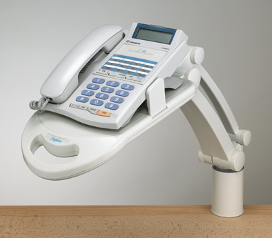 テレホンスタンドフレックス 適応電話機幅130~220mm、質量1kgまで アーム伸長327mm ベース回転範囲360° 最大クランプ取り付け幅60~20mm
