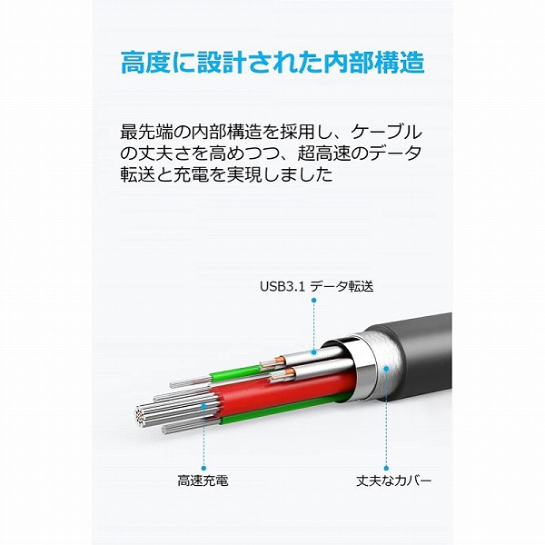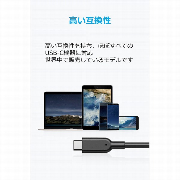 | 商品名 | Anker PowerLine II USB-C & USB-A 3.1(Gen2) ケーブル (0.9m ブラック) 【USB-IF認証取得/超高耐久】 USB-C機器対応 |