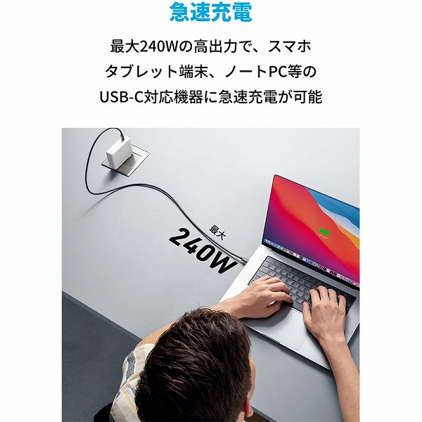 | 商品名 | Anker 515 USB-C & USB-C ケーブル (USB4対応 1.0m) 8K 40Gbps高速データ転送 240W出力対応 Galaxy iPad Pro MacBook Pro/Air 各種対応 (ブラック) |