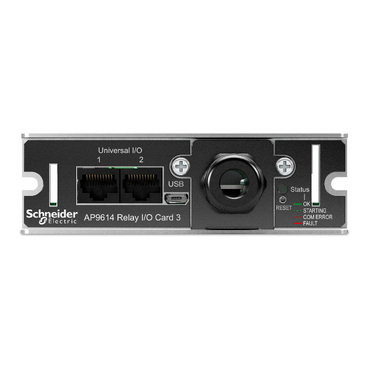 6つの出力リレーでUPSステータスを表示し、4つの入力コンタクトでUPSの制御と検証を行います。ユニバーサルI/Oポートと環境センサーを使用することで、環境条件に基づいた制御と検証が可能。またウェブUIを介してステータスやイベントに基づくUPS設定や出力リレー、入力コンタクト、環境センサーのアクションを構成します。