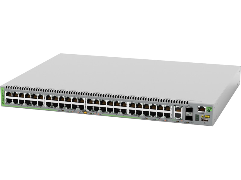 AT-GS970EMX/52(RoHS対応)は、10Gマルチギガビット(1000/2.5G/5G/10GBASE-T)ポートとSFP+スロットをアップリンクに、1ギガビットポートをダウンリンクに搭載し、ソフトウェア機能を厳選することで、コストパフォーマンスを高めたレイヤー3 インテリジェント・エッジ・スイッチです。
