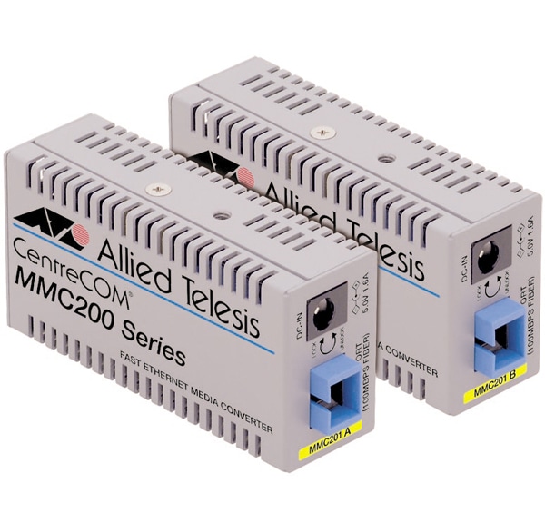 CentreCOM MMC201B-Z7(RoHS対応)は、100BASE-TXツイストペアケーブルと光ファーストイーサネットを変換するメディアコンバーター(デリバリースタンダード保守7年付)です。光ファイバーケーブルは1心のシングルモードに対応しており、MMC201A/201Bを対向で使用することで100Mbpsイーサネットシステムの接続距離を最長15kmまで延長することが可能です。また光ファイバーケーブルはノイズの影響を受けにくいため、工場や研究所などの環境にも適しています。