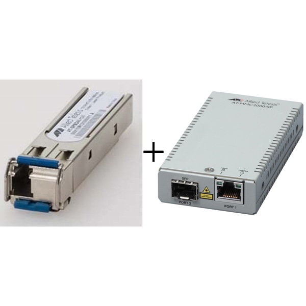 AT-MMC2000BD40/LC-13は、AT-MMC2000/SP+AT-SPBD40-13/Iのバンドルパックです。各製品を別々に購入するより安価で購入できます。これは 10/100/1000BASE-Tツイストペアケーブルと光ファイバーケーブル(LCコネクタ)を変換する単体型メディアコンバーターです。光ファイバーケーブルは1心のシングルモードに対応しており、AT-MMC2000BD40/LC-14と対向で使用することで、1000Mbpsイーサネットシステムの接続距離を最長40kmまで延長できます。