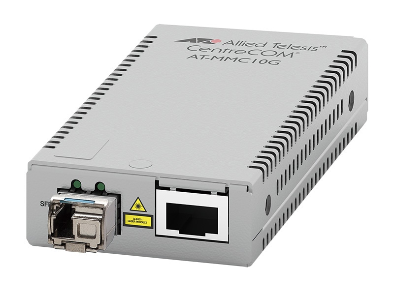 AT-MMC10GT-BD40/LC-13は、AT-MMC10GT/SP と AT-SP10BD40/I-13 を組み合わせたパッケージ製品です。10GBASE-T(RJ45コネクター)と 10G SMF(40km)(LCコネクター)を変換するメディアコンバーターです。対向製品は AT-MMC10GT-BD40/LC-12 (AT-SP10BD40/I-12) です。