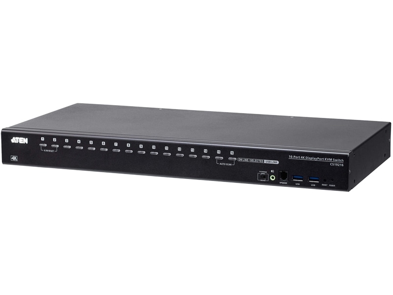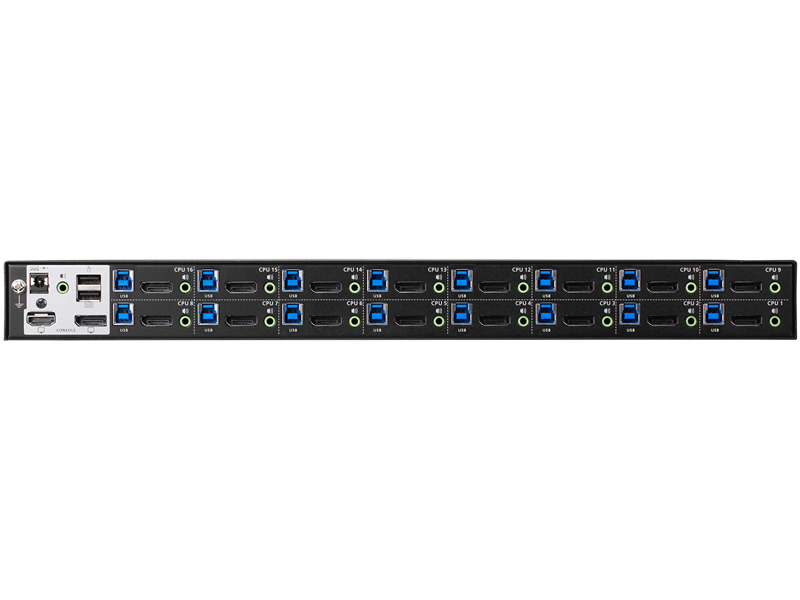 CS19216は、1組のコンソール(USBキーボード、USBマウス、DisplayPortまたはHDMIディスプレイ)から最大16台のDisplayPort対応コンピューターへ効率的にアクセスし操作できる製品です。最大で4K DCI(4096×2160@60Hz)解像度に対応し、ユーザーは鮮明な映像を見ながら、コンピューターを操作することができます。