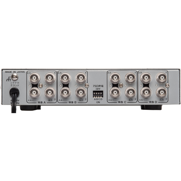 アナログHD映像信号を入力し、1入力に対して各3出力(分配出力2、ループスルー出力1)が可能な映像分配機です。映像入力はAHD/HD-TVI/NTSC映像信号に対応しております。