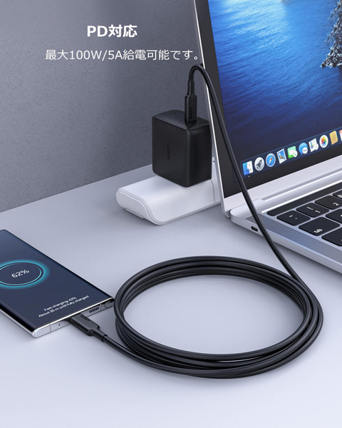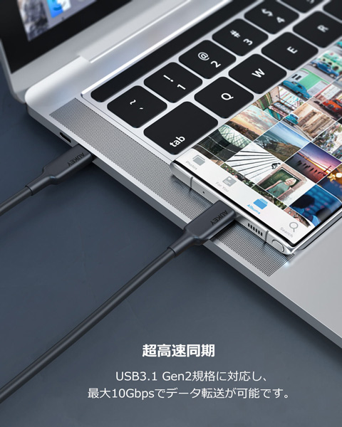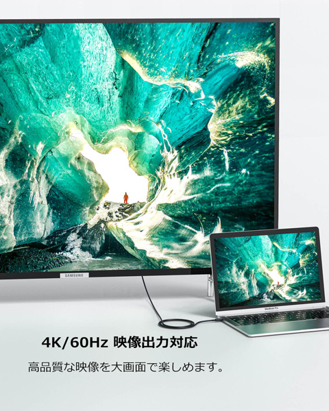 USB-C3.1で、最大100WのUSB PD電力供給に対応。最大4K@30Hzの出力で大画面表示にも対応。最大10Gbpsの超高速データ転送。