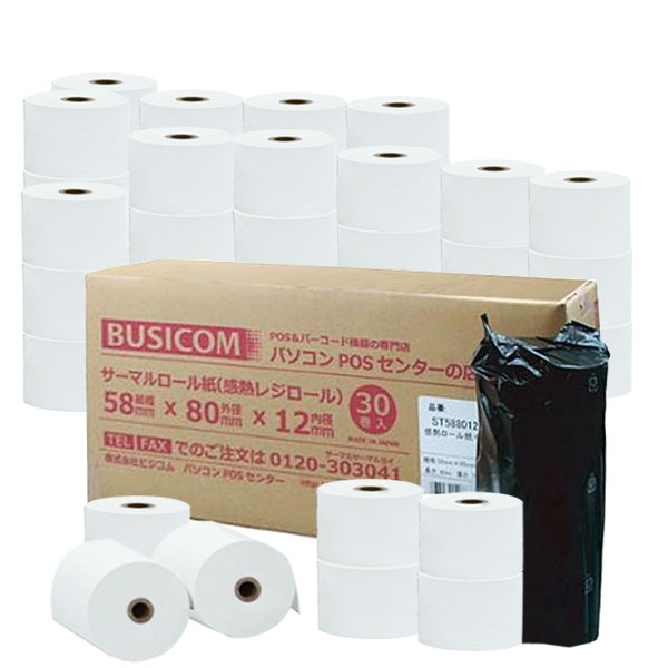 | 商品名 | 感熱レジロール 幅58mm×外径80mm×内径12mm[30巻入] 超高保存紙 |