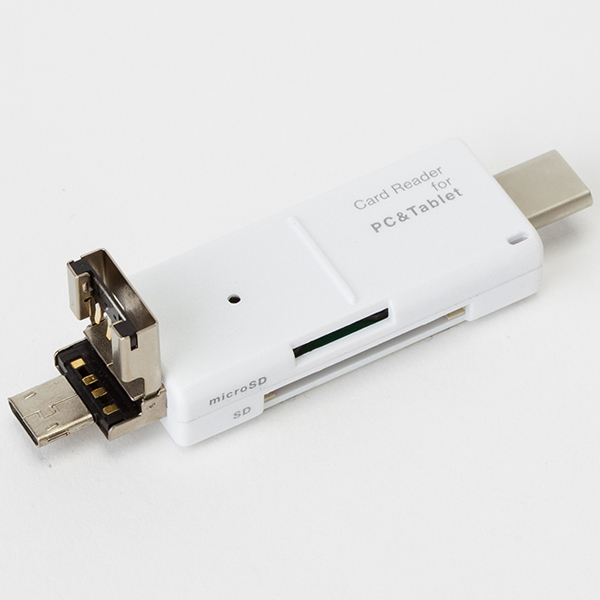 SDカードリーダー Type-C/Micro USB/USB接続 ホワイト