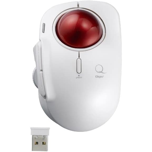 トラックボールマウス 小型 ワイヤレス 5ボタン レーザー式 人差し指 ホワイト