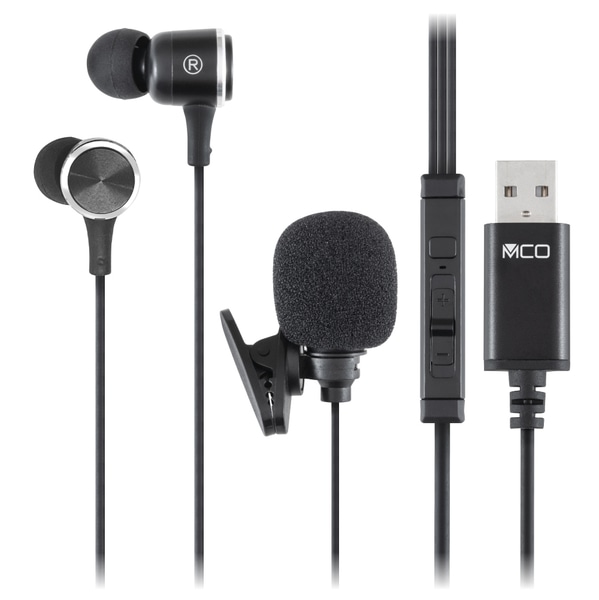 USBイヤホンマイク 声を大きくハッキリ伝える 高感度ピンマイク ブラック