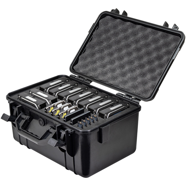 「裸族のハードなケース Guard PRO」 ■複数持っているHDD/SSDの保管・整理・持ち運びに便利な収納ケース(持ち運び取っ手付) ■最大3.5インチHDD(1インチ厚)×9台、2.5インチHDD/SSD(9.5mm厚)×5台、M.2 SSD×5枚収納可能 ■外装はABS+ポリカーボネートを使用しIP67相当の防水、防塵性能でHDD/SSDをガード