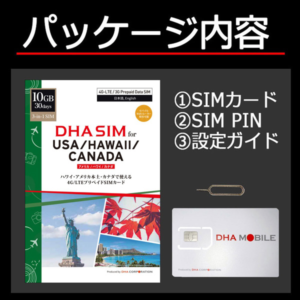 | 商品名 | DHA SIM for USA/HAWAII/CANADA アメリカ/ハワイ/カナダ 10GB30日 プリペイドデータSIMカード |