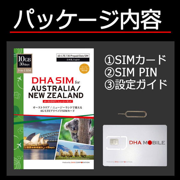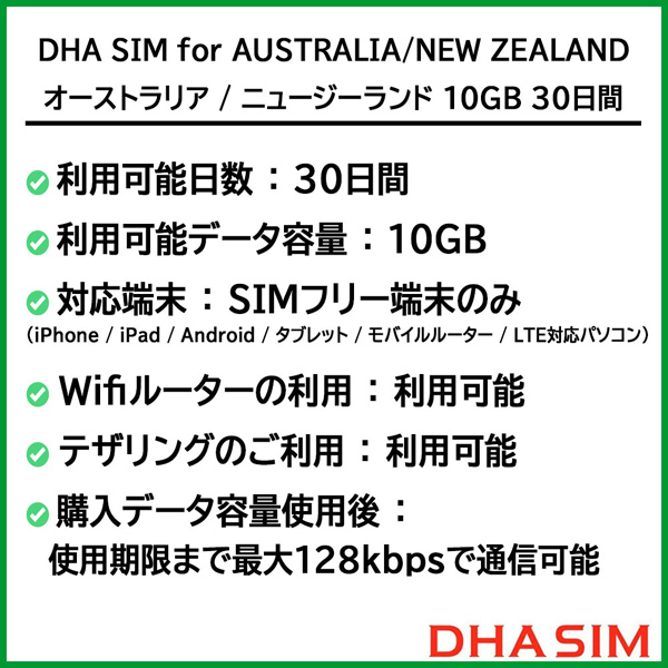 | 商品名 | DHA SIM オーストラリア/ニュージーランド 10GB30日 プリペイドデータSIMカード |