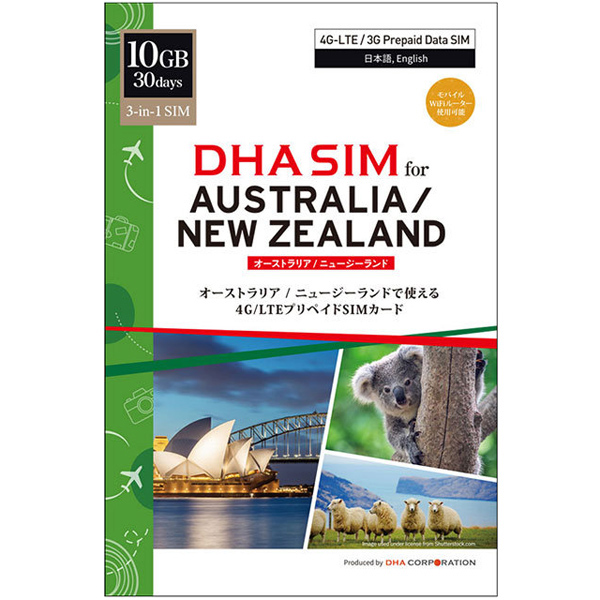DHA SIM オーストラリア/ニュージーランド 10GB30日 プリペイドデータSIMカード
