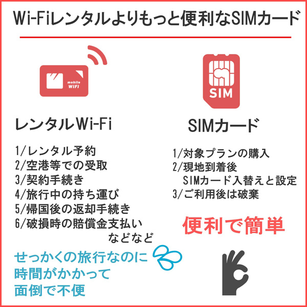 ■使用可能端末:SIMフリー対応 iPhone / iPad / Android スマホ / タブレット / モバイルWiFiルーター / LTE対応パソコンでご利用が可能です。■テザリングをご使用頂けます。■対応SIMサイズ:3-in-1 (標準、マイクロ、ナノサイズ切替え可能)。■パッケージ内容:SIMカード/SIMピン/多言語マニュアル(日本語・英語)■対応4G/LTE 周波数帯:日本の端末に互換性が高いChina Unicom(中国:B3/41)と3HK(香港:B3)のネットワークを使用。 日本と香港では周波数帯域が異なります。ご使用の端末が現地の周波数帯域に対応か、事前にご確認ください。