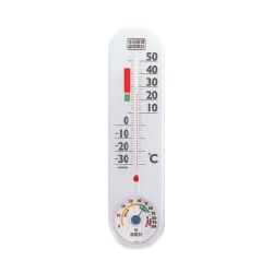快適ゾーンや、食中毒、風邪の注意ゾーンを表示した生活管理温度・湿度計。