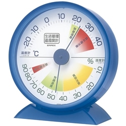 快適ゾーンや、食中毒、風邪の注意ゾーンを表示した生活管理温度・湿度計。スタンド付。