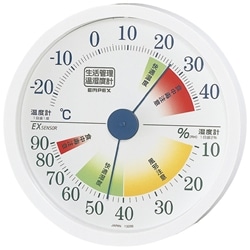 快適ゾーンや、食中毒、風邪の注意ゾーンを表示した生活管理温度・湿度計。