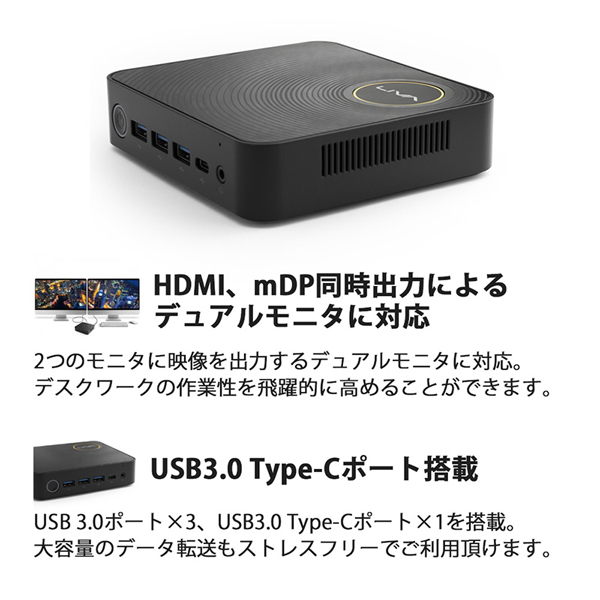 | 商品名 | ミニPC LIVA Z (Intel Celeron N3350/メモリ4GB/eMMC64GB/光学ドライブ無/OS無/Office無) |