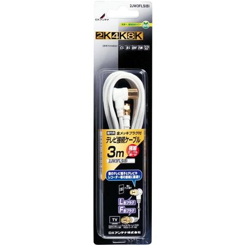 ■高シールド低損失ケーブル採用により2K・4K・8K放送に対応 ■テレビ裏の狭いスペースでも配線しやすい極細ケーブル使用。 ■片側L形プラグ、片側F形プラグ式。L形プラグは狭い場所でもワンタッチで接続。 ■F形プラグはネジ式で機器にしっかり接続できます。 ■シールドプラグ採用だから妨害波に強い ■金メッキプラグにより接触不良を防ぎます ■ケーブル色、ホワイトタイプ。 ■ケーブル長3m ■周波数帯域:10~3224MHz 2K4K8K放送対応 ■ケーブル:2C 3重シールド ■プラグ:F形プラグ + L形プラグ ■インピーダンス:75Ω ■長さ:3m ■色:ホワイト