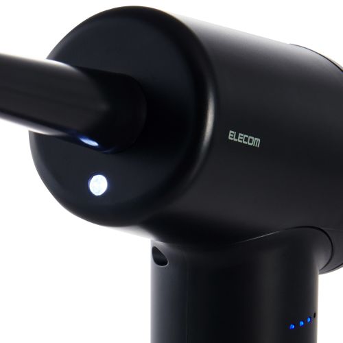 ■パソコン画面やキーボードの隙間にあるホコリやゴミなどを強力な風で吹き飛ばし、パソコン周りをきれいに掃除できる電動エアダスターです。 ■用途に合わせて使い分けられる3種類のノズルを付属しています。 ■人間工学に基づいた斜めグリップで持ちやすく、長時間の掃除も楽にできます。 ■外形寸法:W約110mm×D約65mm×H約210mm(ノズル除く) ■材質:本体外殻:ABS樹脂 ■カラー:ブラック ■重量:約420g(ノズル除く) ■電池:リチウムイオン電池 ■風量調節:3段階(弱・中・強モード) ■風速:弱モード:約22.5m/s、中モード:約24.5m/s、強モード:約28m/s ※噴射ノズル装着時。 ※バッテリーの残量によって風量は変動する可能性があります。 ■騒音値:弱モード:約78dB、中モード:約79dB、強モード:約80dB ■回転数:弱モード:約41000rpm、中モード:約45000rpm、強モード:約49000rpm ■使用時間:弱モード:約25分、中モード:約20分、強モード:約15分 ■充電時間:約3.5時間 ※約2.5時間の充電で約14分使用できます。(強モード) ■保証期間:1年間 ■付属品:ブラシ付きノズル、噴射ノズル、極細ノズル、USB-A - USB Type-Cケーブル