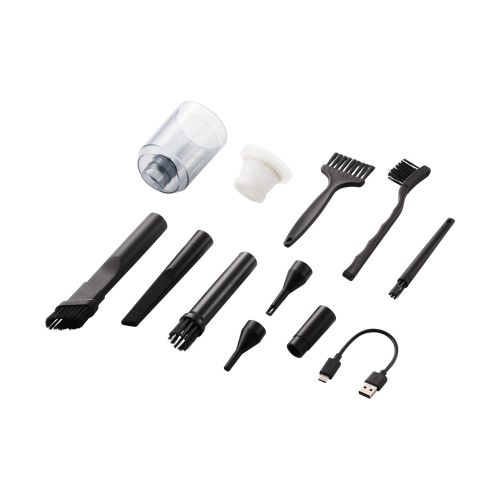 ■パソコンの画面やキーボードの隙間にあるホコリやゴミなどを強力な風で吹き飛ばし、パソコン周りをきれいに掃除できる電動エアダスターです。 ■外形寸法:W約120mm×D約60mm×H約180mm(ノズル除く) ■材質:ABS樹脂 ■カラー:ブラック ■重量:約380g(ノズル除く) ■バッテリー:リチウムイオン電池(2000mAh×3本) ■風量調節:3段階(弱・中・強) ※使用環境によって変化します。また、バッテリーやモーターの異常を感知すると、動作時間内でも動作が停止することがありますが、これは故障ではありません。 ■風速:弱:15m/s、中:18m/s、強:22m/s ■作動音:弱:約43dB、中:約62dB、強:約82dB ■回転数:弱:37000rpm、中:44000rpm、強:50000rpm ■吸引力:弱:3500Pa、中:5000Pa、強:6200Pa ■連続作動時間:弱:約35分、中:約24分、強:約18分 ■充電時間:約3時間 ※使用環境によって変化します。 ■保証期間:1年間 ■内容物:電動エアダスター本体、ダストボックス、噴射ノズル、極細ノズル、ブラシ付きノズル、クリーナーノズル、極細エアーノズル、エアーノズル、平型ブラシ、極細ブラシ、スリムブラシ、USB-A - USB Type-Cケーブル ■生産国:中国