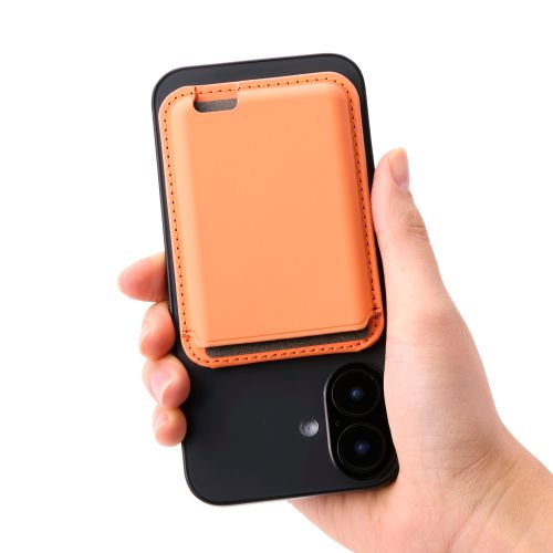 ■MagSafeで簡単に着脱できる、カードウォレットスタンドです。 ■スマートフォンを縦・横どちらにも置くことができ、さまざまなシーンでも快適に動画視聴ができます。 ■カードが2~3枚収納可能。必要なときにサッと取り出しやすいオープンポケットです。 ■スマートフォンとICカードの干渉を防ぐ、磁気防止シートを付属。改札もスムーズに通れます。 ■軽量・スリムなデザインなのでコンパクトに持ち運べ、スマートフォンに取り付けたまま操作するときも邪魔になりにくいです。 ■ケース内部にはカードストッパーが付いているので、カードを入れた状態で逆さまにしてもカードが落ちてくることはありません。 ■ケース下部にはプッシュホールが開いていて、指でカードを押し上げると簡単にカードを取り出すことができます。 ■対応機種:MagSafe対応iPhone ※MagSafe非対応の機器本体やケースには使用できません。 ■セット内容:ウォレットスタンド×1、磁気防止シート×1 ■材質:ウォレットスタンド:合成皮革・ポリエステル・磁石・鉄、磁気防止シート:PET・鉄 ■外形寸法:幅約66mm×厚み約12mm×高さ約95mm ■カラー:オレンジ