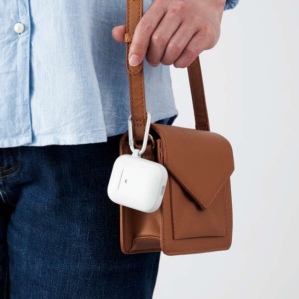 無線充電AirPods対応アクセサリ/TOUGH SLIMケース/カラビナ付/ホワイト