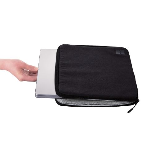 ■MacBook Pro 14インチ(2021年発売モデル)専用設計のインナーケースです。 ■メイン気室内側面には、収納機器の周囲を360度保護する、クッション内蔵のコーナーガードを備えています。 ■本体底面には、軽量化と衝撃吸収を両立する低反発ウェーブカットウレタンフォームを内蔵しています。 ■本体天面には、面の衝撃をしっかり緩和する、低反発フラットウレタンフォームを内蔵しています。 ■メイン気室内部には、出し入れ時にパソコン本体を傷つけにくい起毛素材を採用しています。 ■シーンを選ばず使える、シンプルなデザインに仕上げています。 ■表生地表面には、撥水加工を施しています。 ■ファスナー引き手には、持ちやすい紐タイプの引き手を採用しています。 ■気室開閉と収納物の出し入れがしやすい、フルオープンタイプのダブルファスナー仕様です。 ■外寸:幅約355mm×厚さ約30mm×高さ約265mm ■内寸:幅約313mm×厚さ約16mm×高さ約222mm ※参考収納寸法 ■重量:約220g ■材質:ポリエステル、低反発ポリウレタン ■カラー:ブラック ■対応モデル:MacBook Pro 14インチ(2021年発売モデル) ※2021年12月時点での情報です。 ■表面加工:撥水