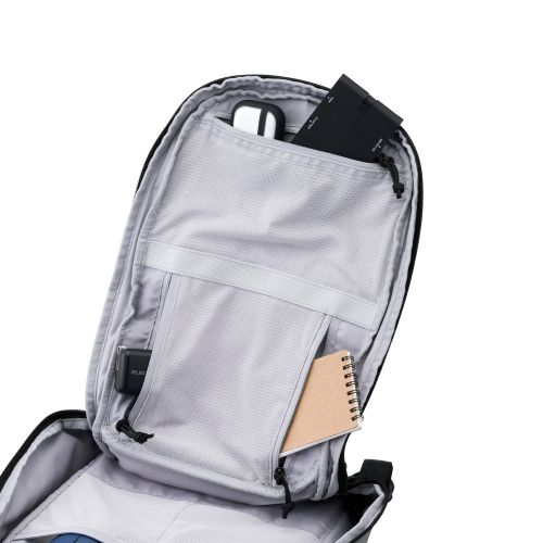 ■仕事と生活を自由に行き来する現代のライフスタイルに寄り添い、最適なデザインと機能を追求した、バックパックです。 ■容量:約14L ■外形寸法:W約290mm×D約120mm×H約420mm ※ハンドル・ショルダーベルト含まず ■気室数:2(前気室+メイン気室) ■内寸:パソコンポケット:W約230mm×D約20mm×H約325mm ※14.0インチノートパソコンの参考収納寸法 ■ポケット(前面):ファスナーポケット×2 ■ポケット(天面):ファスナーポケット×1 ■ポケット(気室内):前気室:オープンポケット×3・ペン挿し×2、メイン気室:パソコン用オープンポケット(起毛)×1・タブレット用オープンポケット×1・オープンポケット×2・ファスナーポケット(ストレッチメッシュ)×2・AirTag用オープンポケット×1・ペン挿し×2 ■カラー:チャコール ■材質:ポリエステル ■質量:約880g ■対応モデル:~14.0インチノートパソコン ■パソコン収納部内寸備考:※W約230mm×D約20mm×H約325mmまでの端末の収納に対応します。記載のサイズ以下でも形状等により対応しない場合があります。 ■表面加工:撥水加工(表生地)