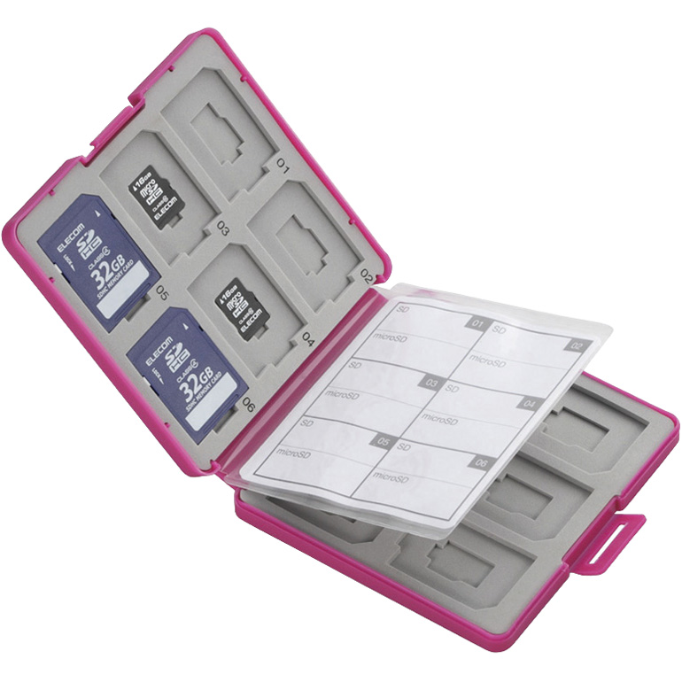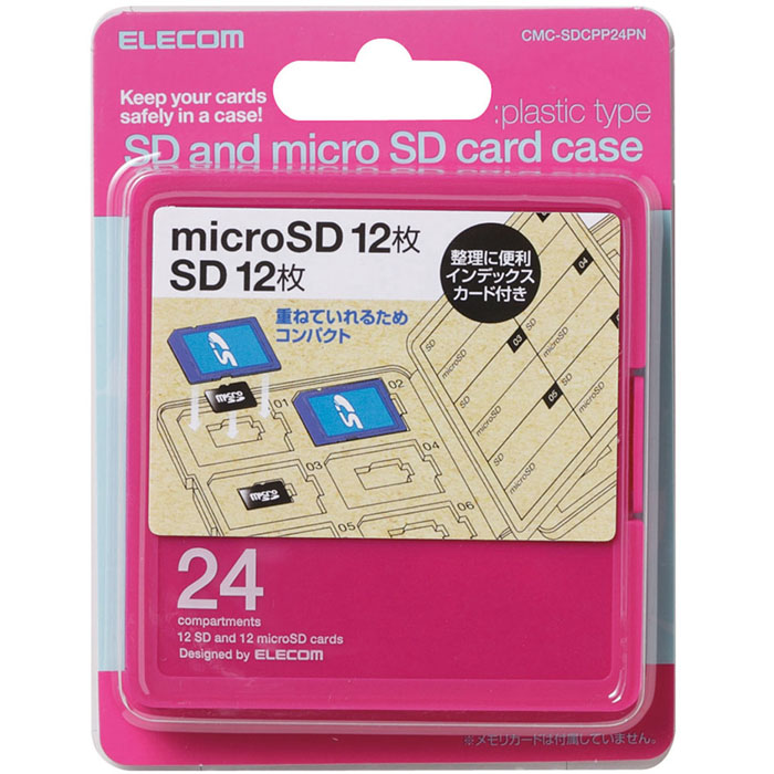 メモリカードケース/インデックス台紙付き/SD12枚+microSD12枚収納/ピンク
