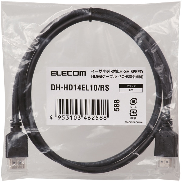 RoHS指令準拠HDMIケーブル/イーサネット対応/1.0m/ブラック/簡易パッケージ