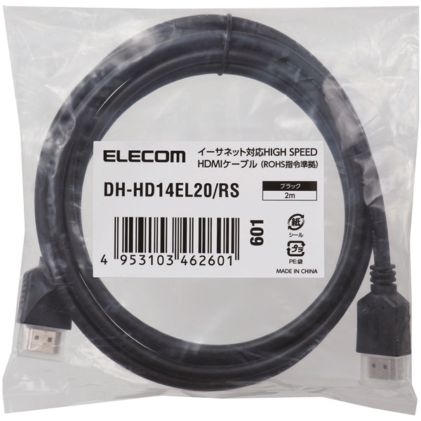 RoHS指令準拠HDMIケーブル/イーサネット対応/2.0m/ブラック/簡易パッケージ