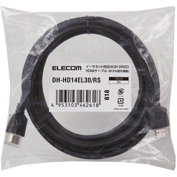 RoHS指令準拠HDMIケーブル/イーサネット対応/3.0m/ブラック/簡易パッケージ