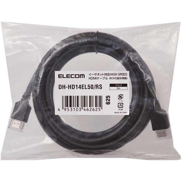 RoHS指令準拠HDMIケーブル/イーサネット対応/5.0m/ブラック/簡易パッケージ